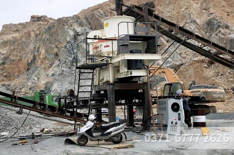 部对石头进行挤压,然后均匀的将物料破碎成符合下一层制砂机或者细破碎机设备进料标准的物料。