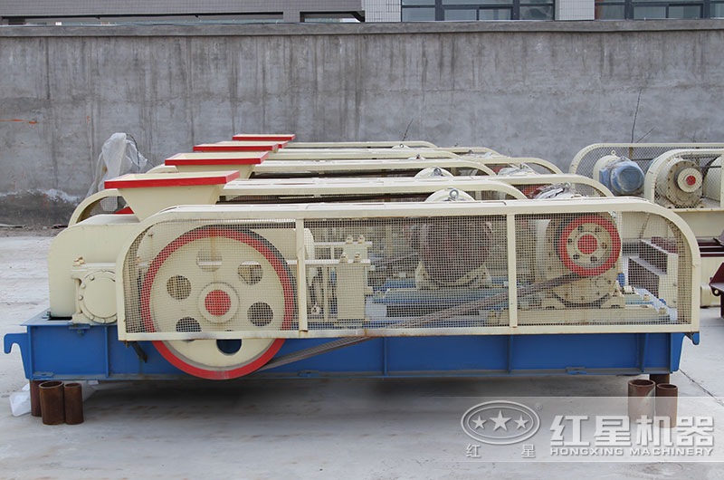 出料粒度的调节:两辊轮之间装有楔形或垫片调节装置,楔形装置的顶端装有调整螺栓,当调整螺栓将楔块向上拉起时,楔块将活动辊轮顶离固定轮,即两辊轮间隙变大,出料粒度变大,当楔块向下时,活动辊轮在压紧弹簧的作用下两轮间隙变小,出料粒度变小。垫片装置是通过增减垫片的数量或厚薄来调节出料粒度大小的,当增加垫片时两辊轮间隙变大,当减少垫片时两辊轮间隙变小,出料粒度变小。辊式破碎机具有结构简单、紧凑轻便、工作可靠、价格低廉、维修方便等优点,并且破碎产品粒度均匀,过粉碎小,产品粒度细(可以破碎到3毫米以下)。所以适于处理脆性物料及含泥土黏性物料的小型选厂,作为中细碎之用。