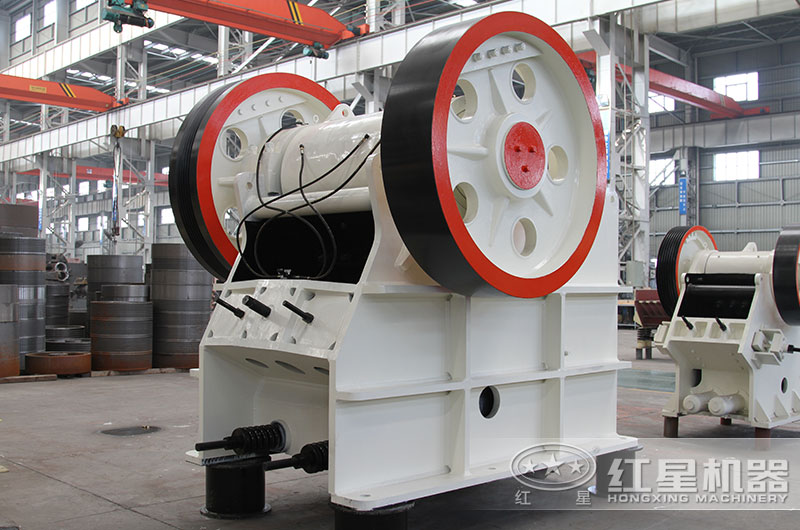另外,为满足不同排料粒度的要求和补偿颚板的磨损,还增设了排料口调整装置,通常是在肘板座与后机架之间加放调整垫片或楔铁。但为了避免因更换断损零件而影响生产,也可采用液压装置来实现保险和调整。有的颚式破碎机还直接采用液压传动来驱动动颚板,以完成物料的破碎动作。这两类采用液压传动装置的颚式破碎机,常统称为液压颚式破碎机。