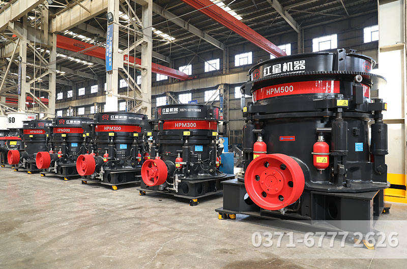 时产在300吨左右的多缸液压圆锥破碎机型号为HPM300,它的进料尺寸不超过150-235mm,每小时产量在180-445吨之间。