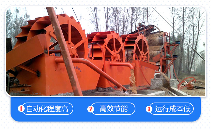这条洗砂线除了对设备的开机停机及日常维护之外,很少需要人工操作,具有占地面积小,产量高等特点。用户可以根据自己的具体产能要求,随时调节轮斗洗砂机的叶轮旋转速度,控制洗砂产值。