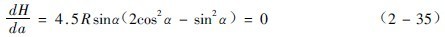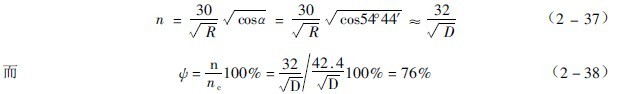 在抛落式工作的磨机中,磨矿作用主要来自钢球到达落回点的动能。此动能的大小,与钢球的落下高度(H)有关,而钢球的落下高度又决定于磨机的转速。根据前面的论述,必然可从钢球落下高度来决定磨机的合适转速。照此理,将公式取导数,并令它等于零,就可以求出使钢球有抛物落下高度时的脱离角,再从它找到相应的转速。