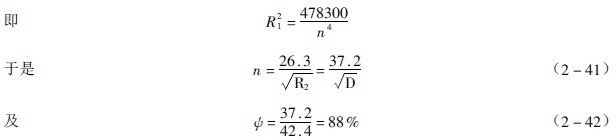 此值与前面讲的v1=0(即vp=vn)时的脱离角很接近。 应用公式(2-36)来决定转速时,有两种方法。第一种用外层球有落下高度来定转速。若取外层球的半径即磨机的内半径,由公式得到 这种办法只考虑外层球处于适宜状态,其他层球则未必处于适宜状态,装球越多,不适宜的球层也越多,故不是合理的办法。求得的转速率较低,不能保证球荷作抛落式工作,现在转速较低的磨机采用此法。第二种用球荷的回转半径与脱离角的关系来推算。设想全部球荷的质量集中在某一层球,此层球可以代表全部球荷,它的球层半径(R0)就是全部球荷绕磨机中心(O)作圆运动的回转半径。根据扇形对O点的极转动惯量中径的求法,可以得到