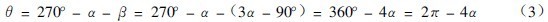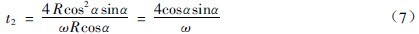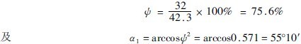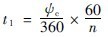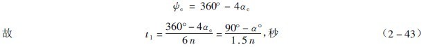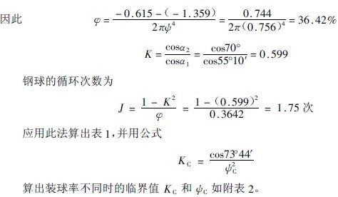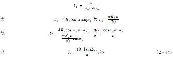 磨机一直是作圆运动的,但其中的钢球的运动轨迹,一部分是圆曲线,另一部分是抛 物线。因此,磨机转一转,钢球的运动未必也就是一个循环。钢球从脱离点A真抛到落回点B,比圆运动快,因而钢球总是超前的,换句话说,磨机转一转时,钢球不只循环运动一次。设%"是钢球作圆运动的时间,当磨机转一转时,用同样速度作圆运动的钢球转过的圆心角为,因此 由公式(2-38)可知