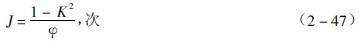 再从全部球荷来看,如图3-2-13,在磨机转一周的时间内,沿圆形轨迹经过断面AB的球的体积为 此处的L为磨机长:K=为装球率,磨机内装球的体积为。如果磨机转一转,全部钢球循环J次,则 于是 公式(2-20),指明,所以R2(或由它算出的K)的值依从转速n而有一极限值。超过此极小值,多加的那些球就不能作抛物落下。所以上式中的J,既与装球率有关,又通过K值而与磨机的转速有关。如图3-2-14表示的情况。图中曲线说明:转速率越大的,在同样装球率下,K值也越大,J值却较小。如果转速率相同,装球率越多,K值越小,J值却较大。这就是转速、装球量和影响冲击量的钢球循环次数的相互关系,从而况明了正确决定磨机转速的重要性。〔附〕图3-2-9中K、的关系式的证明装球率()与球荷切面积()的关系为 球荷切面积包含作圆曲线运动的切面积(1)和作抛物线运动的切面积(2)两部分,即 故须先求出12
