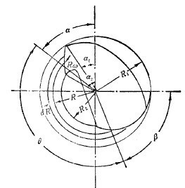 如下图,任取一球层,它的半径是R,此层球从落回点B作圆运动到脱离点A经历的圆弧所对的圆心角 当球层半径的变化为dR时,弧形面积的变化为 于是 球荷作抛物线运动的微分球荷截面积为: 式中的为筒体的角速度,t2为球在抛物线轨迹上运动的时间, 球荷截面积因此为 将此式代入公式(1)后,得到 下面作一例题说明公式(11)的用法。
