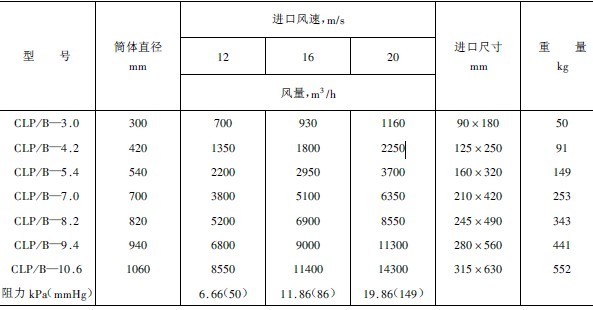 表3-4-10 CLP/B型旋风集尘器技术规格(一)